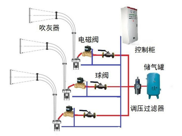 聲波吹灰是以壓縮空氣作為聲波的能源,高強度的鈦金屬膜片在壓縮空氣氣源作用下自激振蕩,并在諧振腔內產生諧振,把壓縮空氣勢能轉換為低頻聲能,通過空氣介質把聲能傳遞到相應的積灰點,使聲波對灰渣起到"聲致疲勞"的作用,由于聲波振蕩的反復作用,施加于灰、渣的擠壓循環變化的載荷,達到一定的循環應力次數時,灰、渣的結構因疲勞而破壞,然后因重力、或因流體介質媒體將灰渣吹除出附著體表面,達到吹灰的作用。